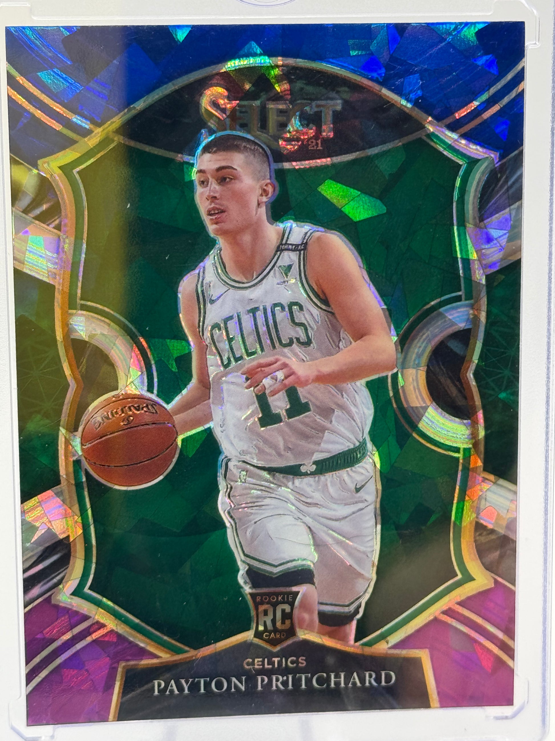 2020-21 Panini Select #86 Payton Pritchard Blue Green Purple Cracked Ice RC Boston Celtics