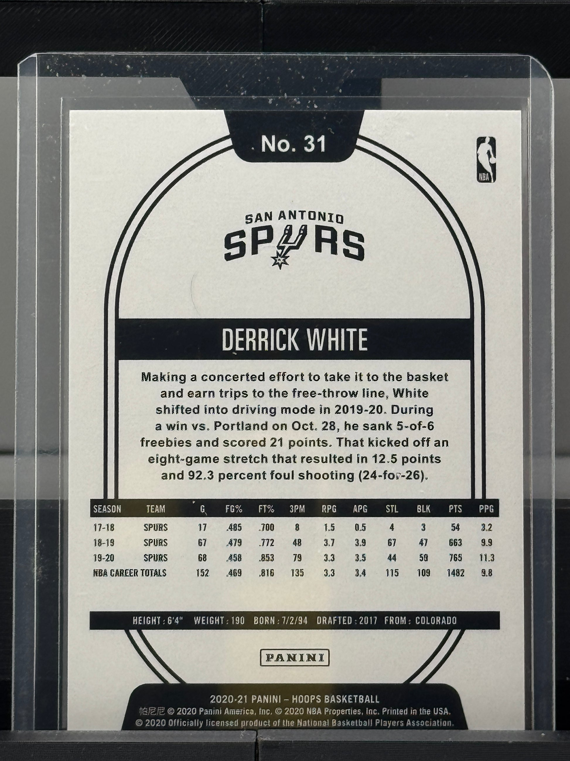 2020-21 Panini Hoops #31 Derrick White 100/199 San Antonio Spurs