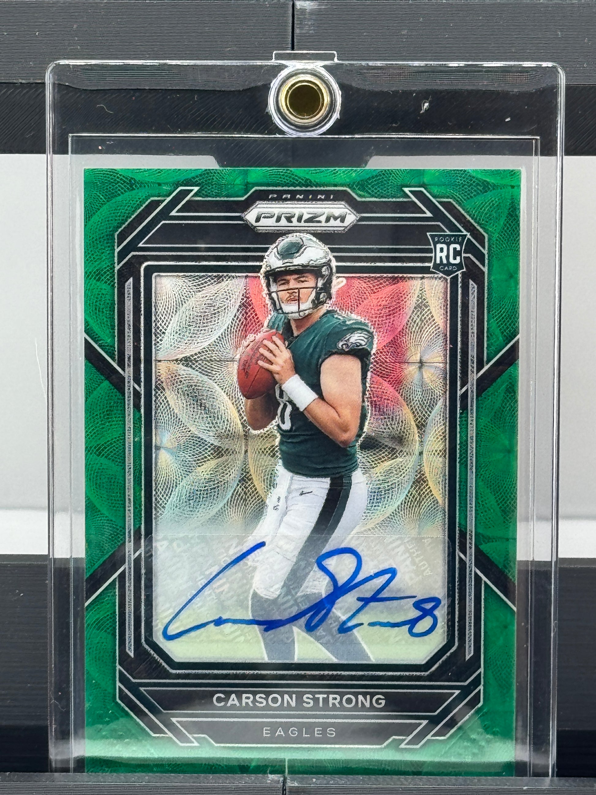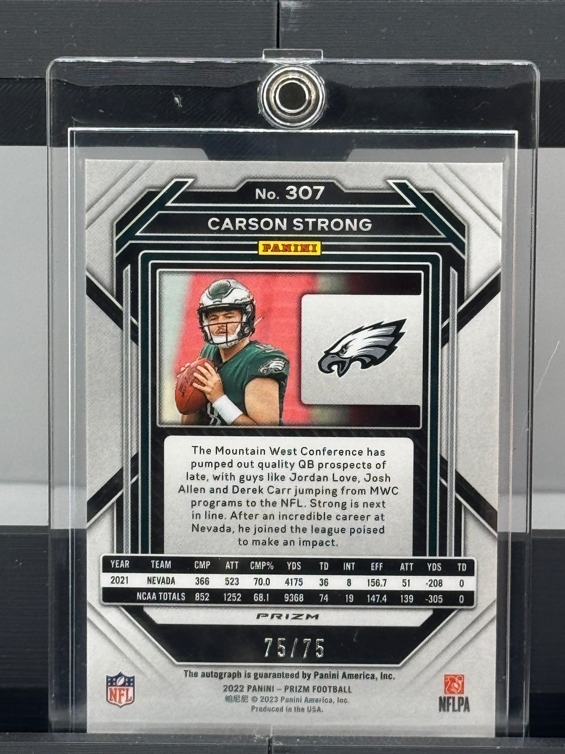 2022 Prizm #307 Carson Strong Auto Green Scope Prizm 75/75 BOOKEND!! Philadelphia Eagles