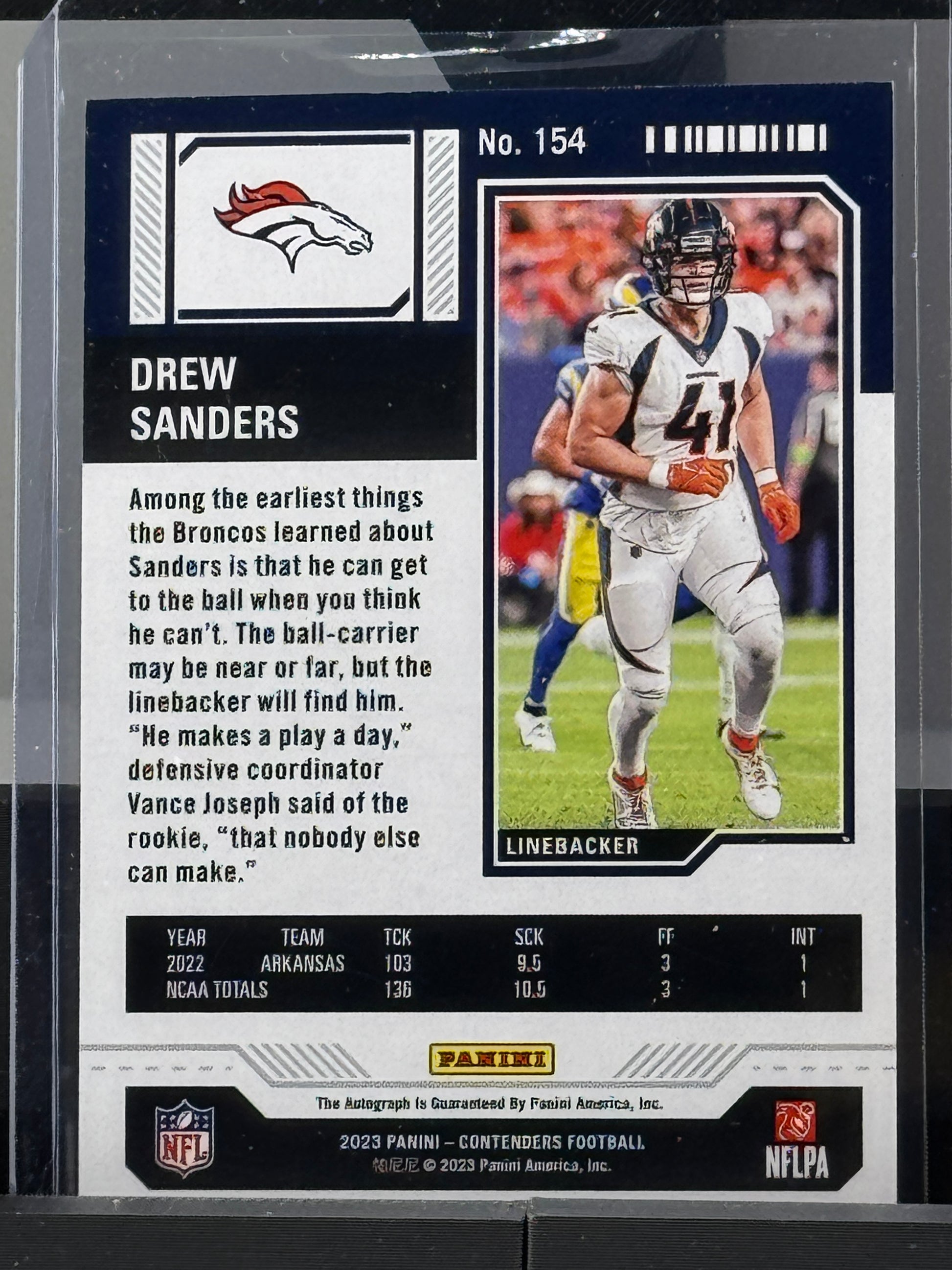 2023 Panini Contenders #154 Drew Sanders Divisional Ticket Autograph 83/99 Denver Broncos