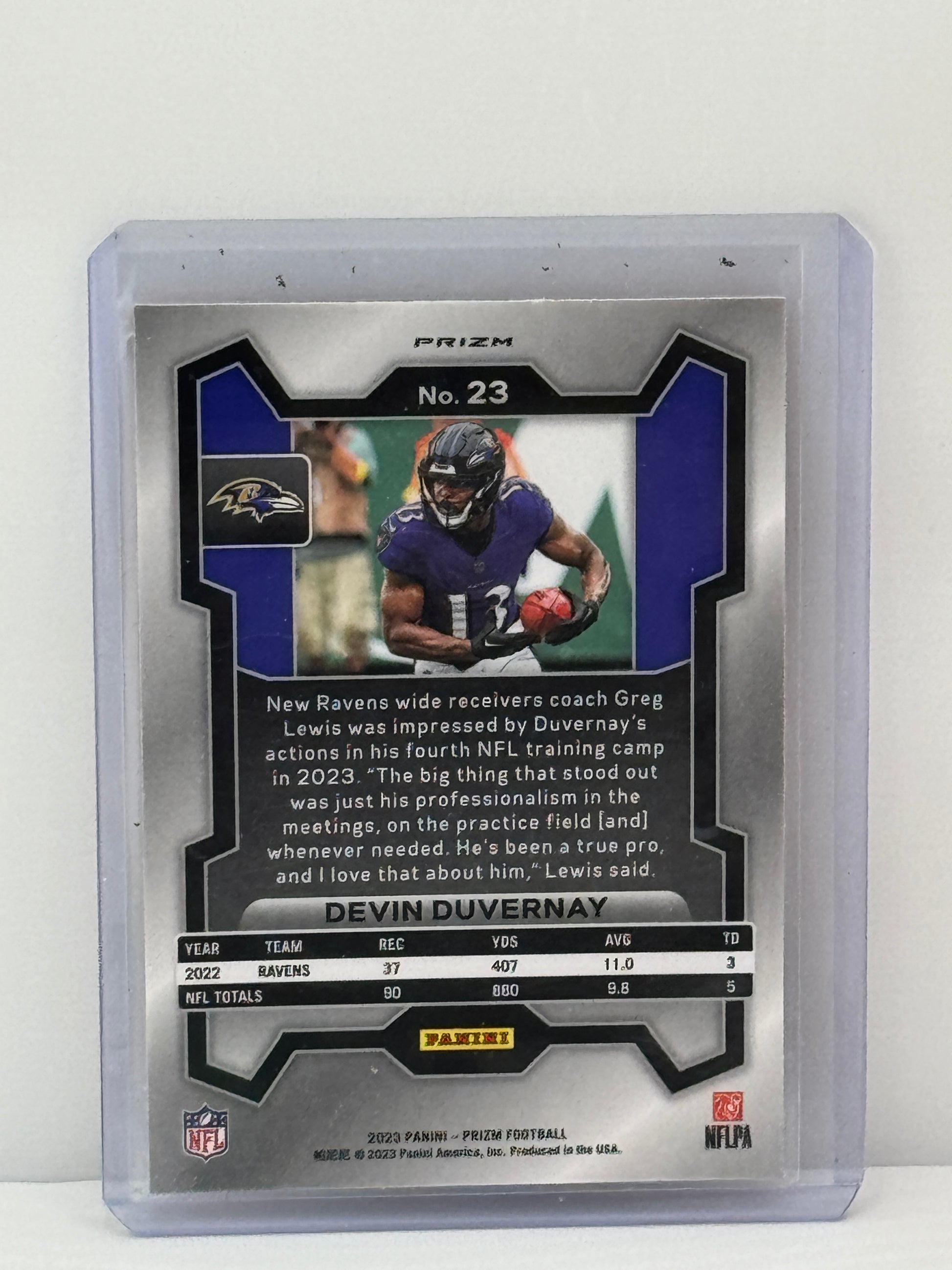 2023 Panini Prizm #23 Devin Duvernay Orange Lazer Prizm Baltimore Ravens