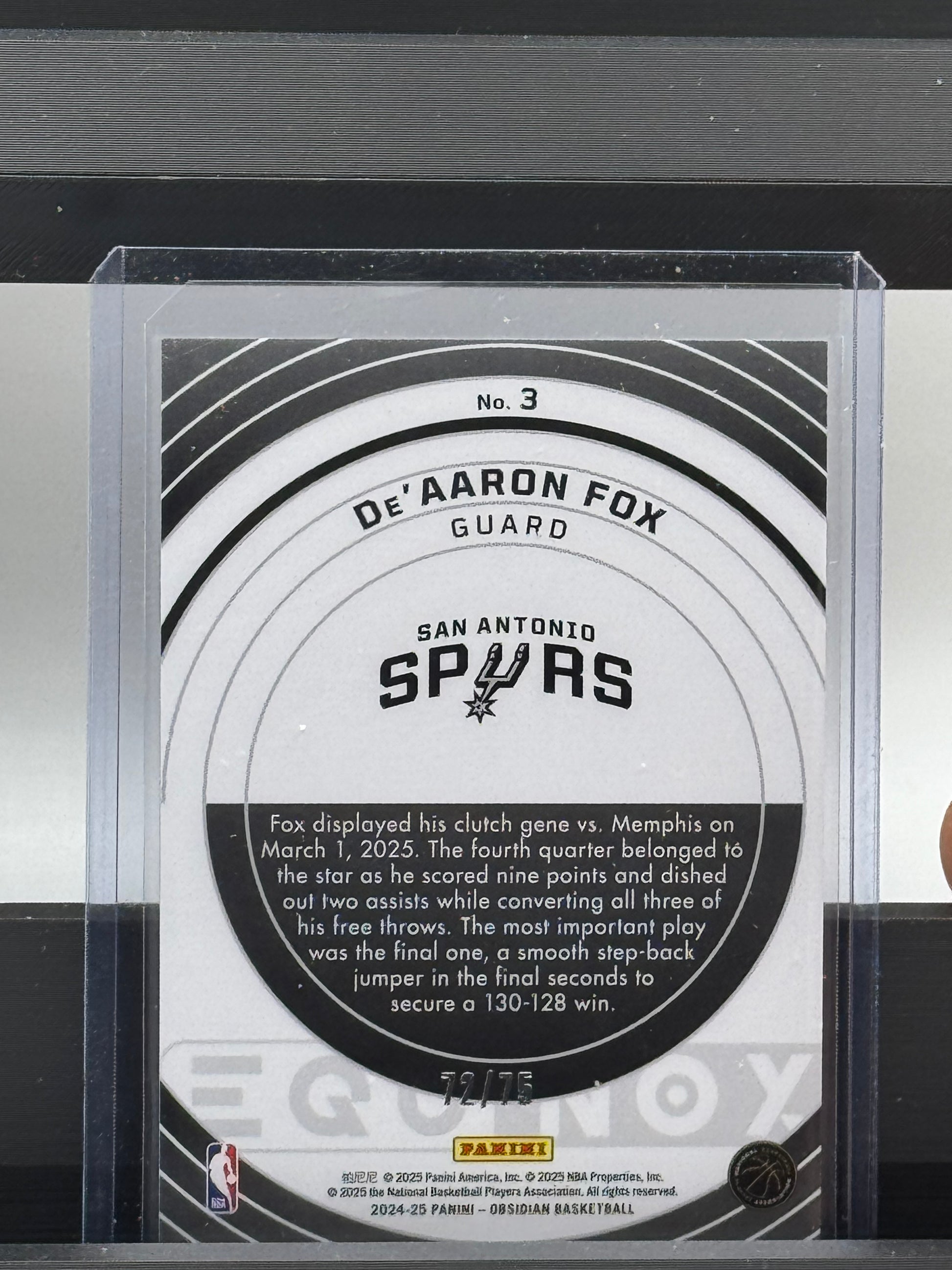 2024-25 Panini Obsidian #3 DeAaron Fox Equinox 72/75 San Antonio Spurs