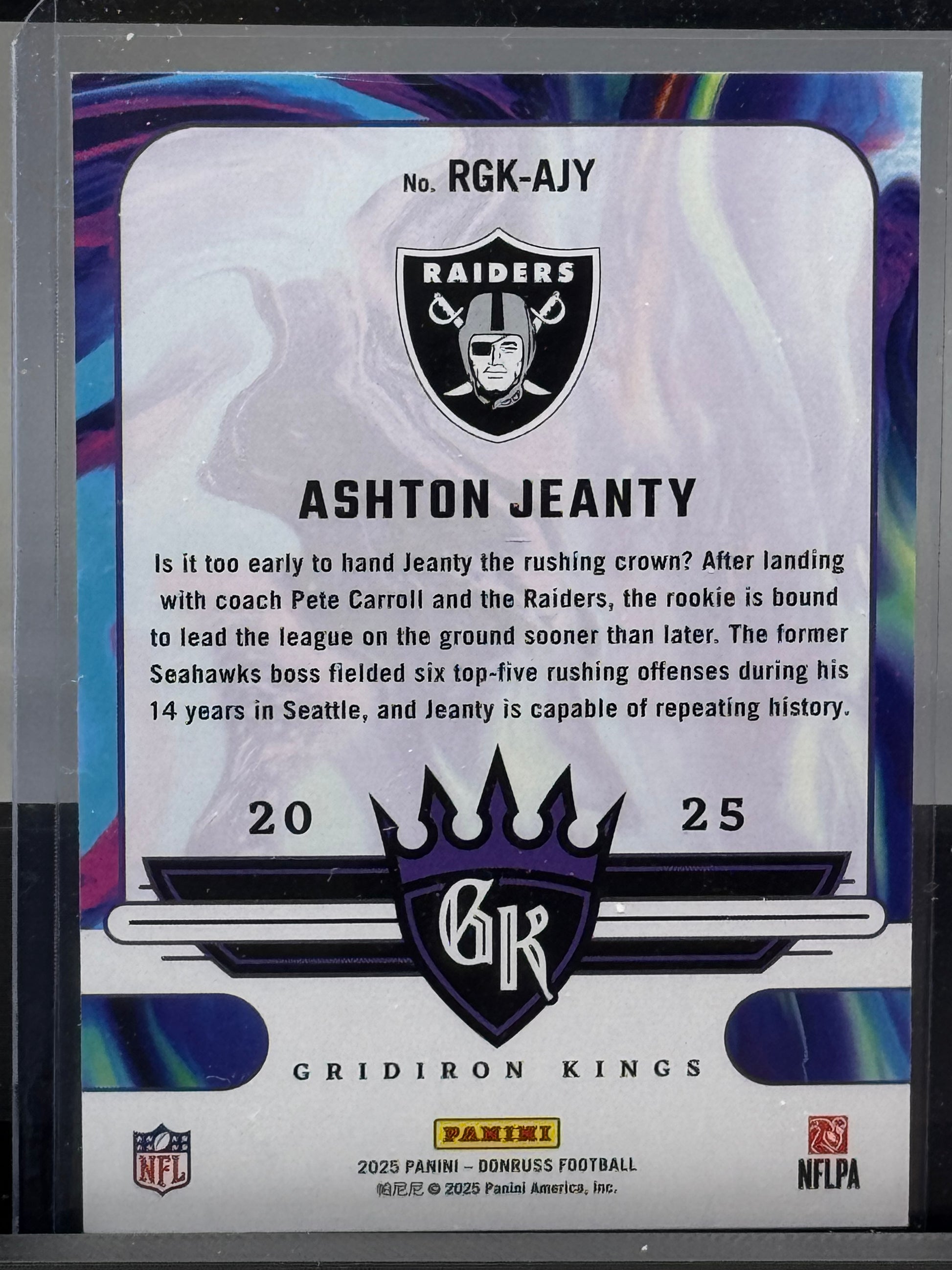 2025 Donruss #RGK-AJY Ashton Jeanty RC Gridiron Kings Las Vegas Raiders