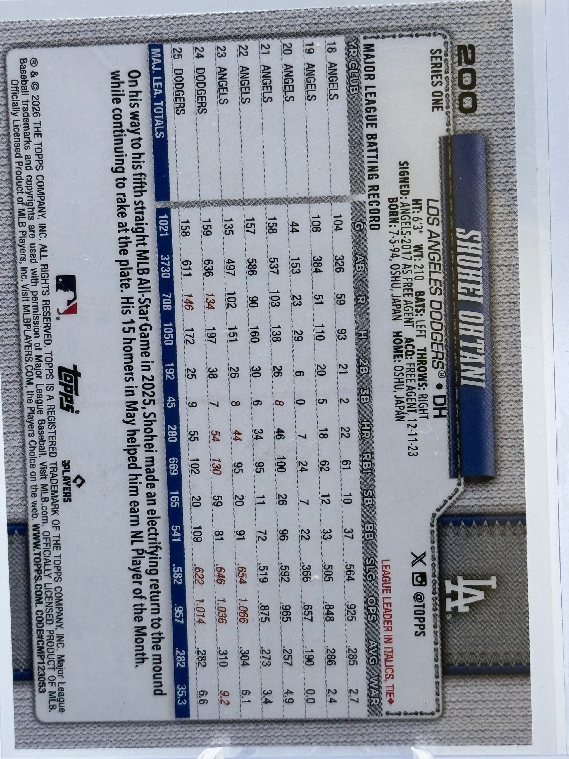 2026 Topps Series One #200 Shohei Ohtani Los Angeles Dodgers